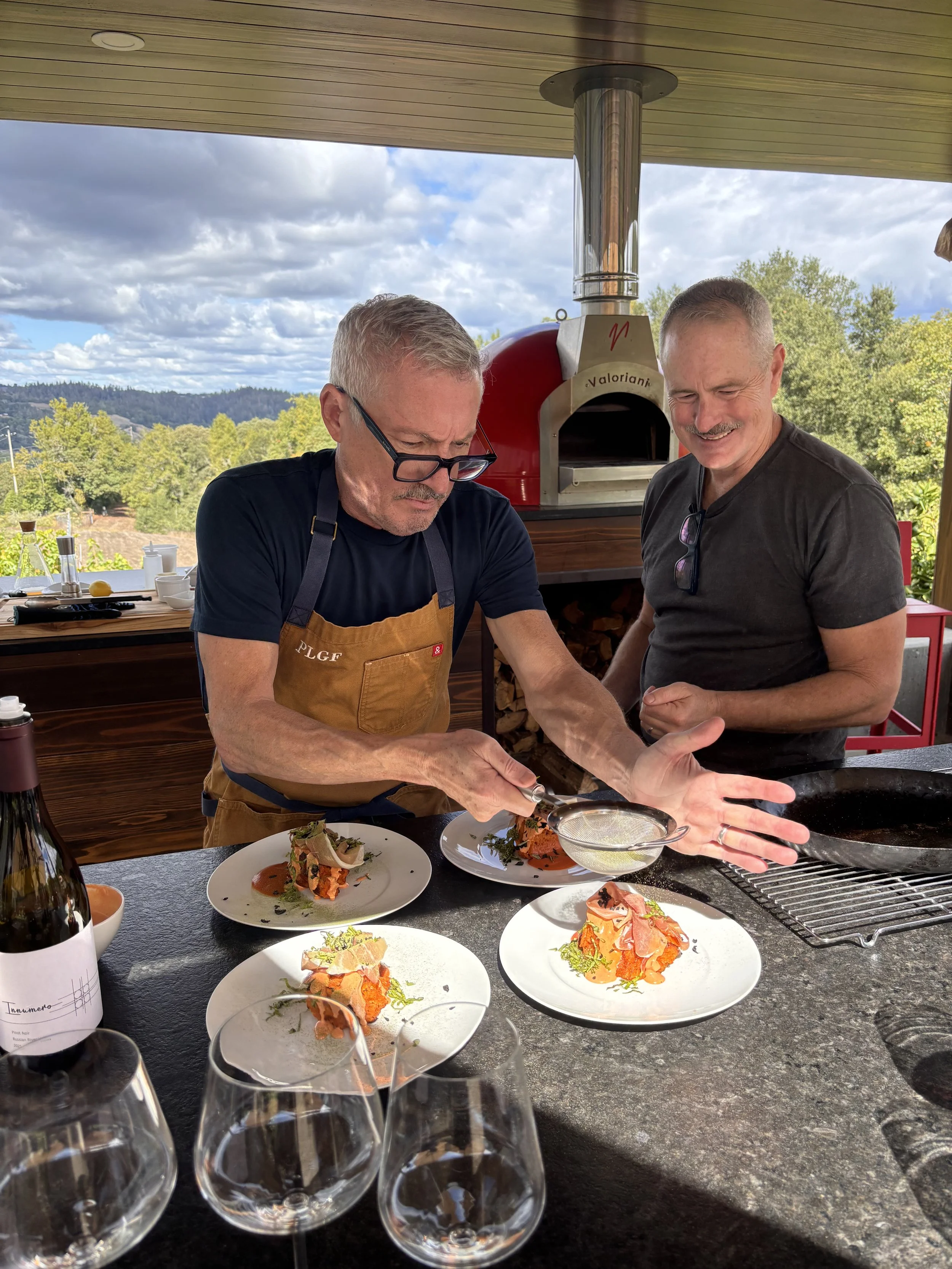In their open-air, wood-fired kitchen, Chefs Scott Lietzke & Martin Meeker cook what they grow. Each private dining experience is a reflection of the day’s harvest—from olive oil to organic produce, handmade pastas to fire-roasted meats all paired with Innumero’s elegant Pinot Noir and Chardonnay. Guests gather in the outdoor kitchen nestled in the orchard, surrounded by the scent of wood smoke and fresh herbs.