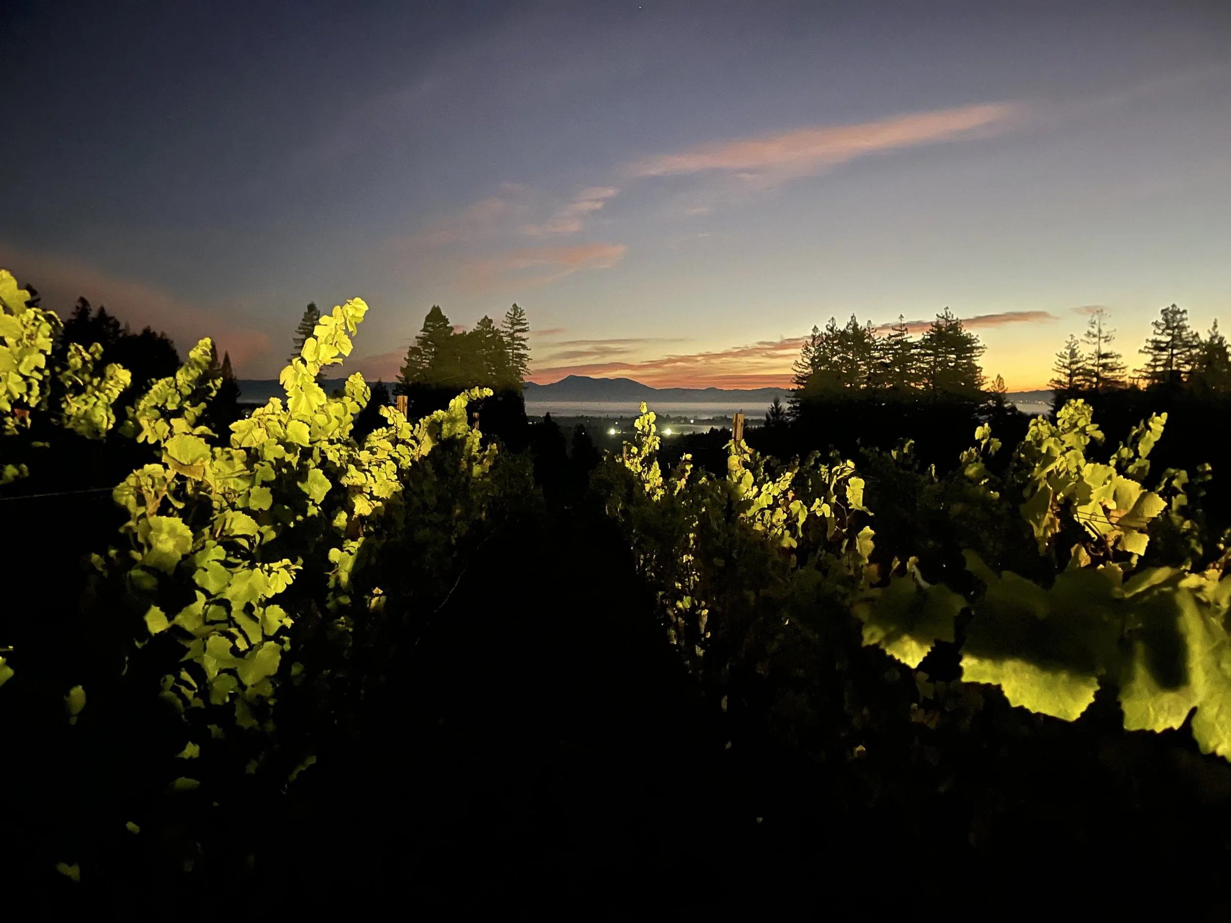 Just down the road from Bootlegger’s Hill Vineyard, Little Boot sits on level ground comprised of sandy loam Goldridge Soil at 1,100 feet of elevation. It is sheltered on one side by a stand of Redwood trees that moderates breezes flowing through the vineyard. The diurnal shift in temperature takes place at around 10:00am and 5:00p each day, warming the vineyard for ripening during the day and returning back to cool and stable nighttime temperatures for the perfect fruit development.Little Boot Vineyard Calera is typically our last fruit harvested each year.